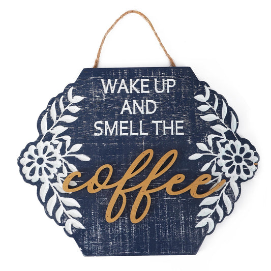 Wood Coffee Signs Decor for Coffee Bar, Hanging Wall Sign with Rope for Coffee Station