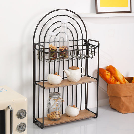 3 Tier Metal Wire Countertop Organizer, Wall Mount Hanging Spice Rack Storage Shelf