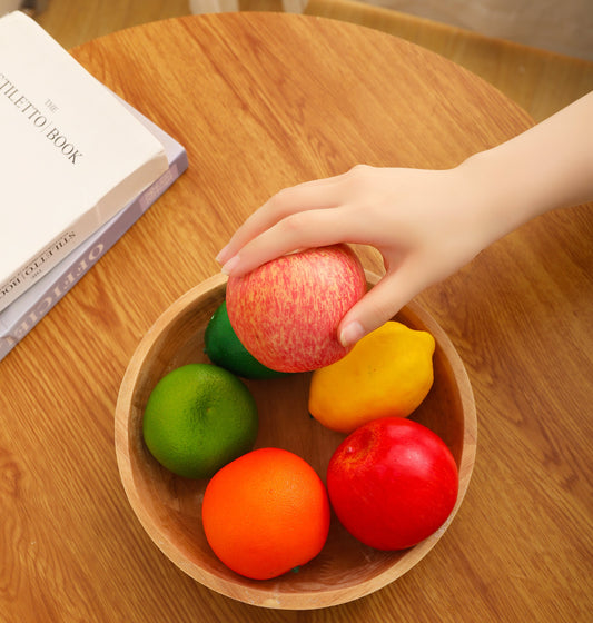 Set of 2 Natural Wooden Decorative Bowl, Round Hand Carved Bowl for Decorative Kitchen Countertop