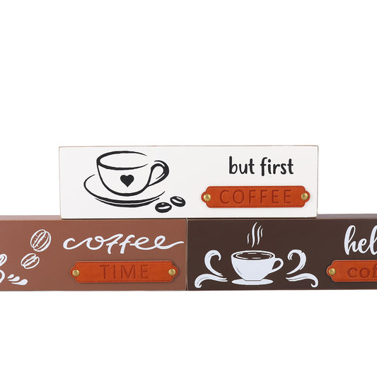 Coffee Bar Box Sign Countertop Decor, Wooden Tabletop Letter Signs Decor for Home, Kitchen Desk, Coffee Table(14 x 3.9 Inch) (3 different color to pick)