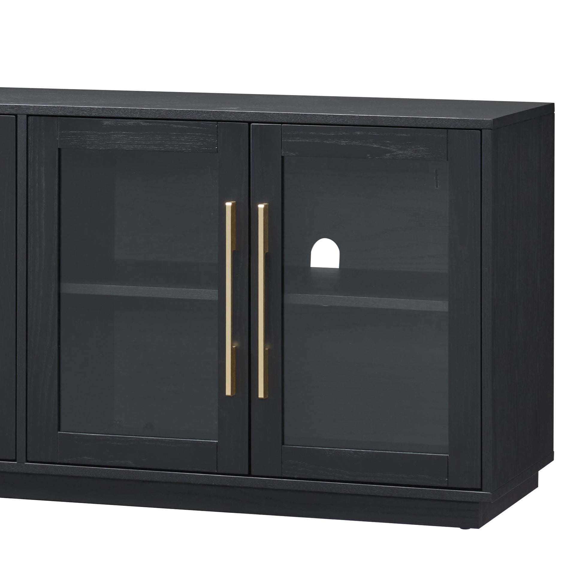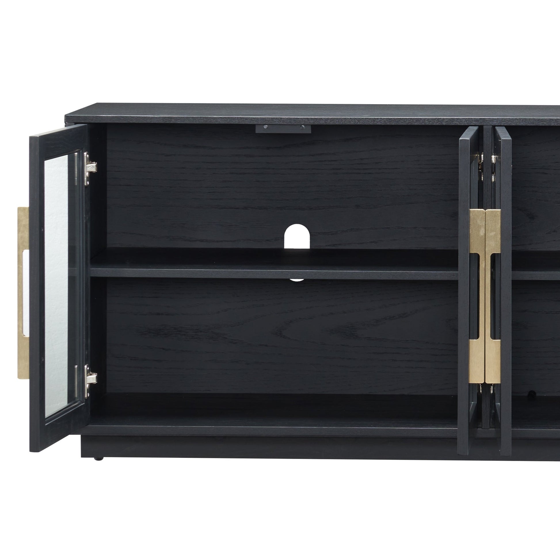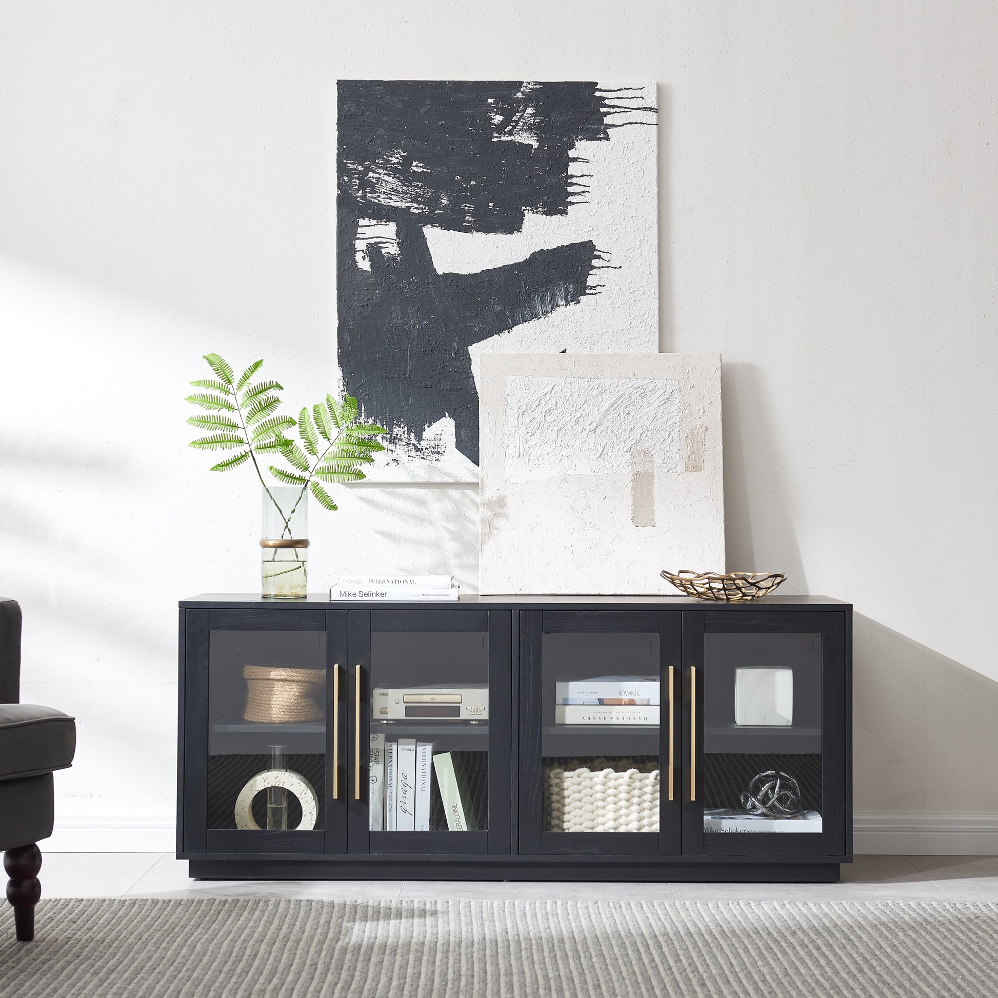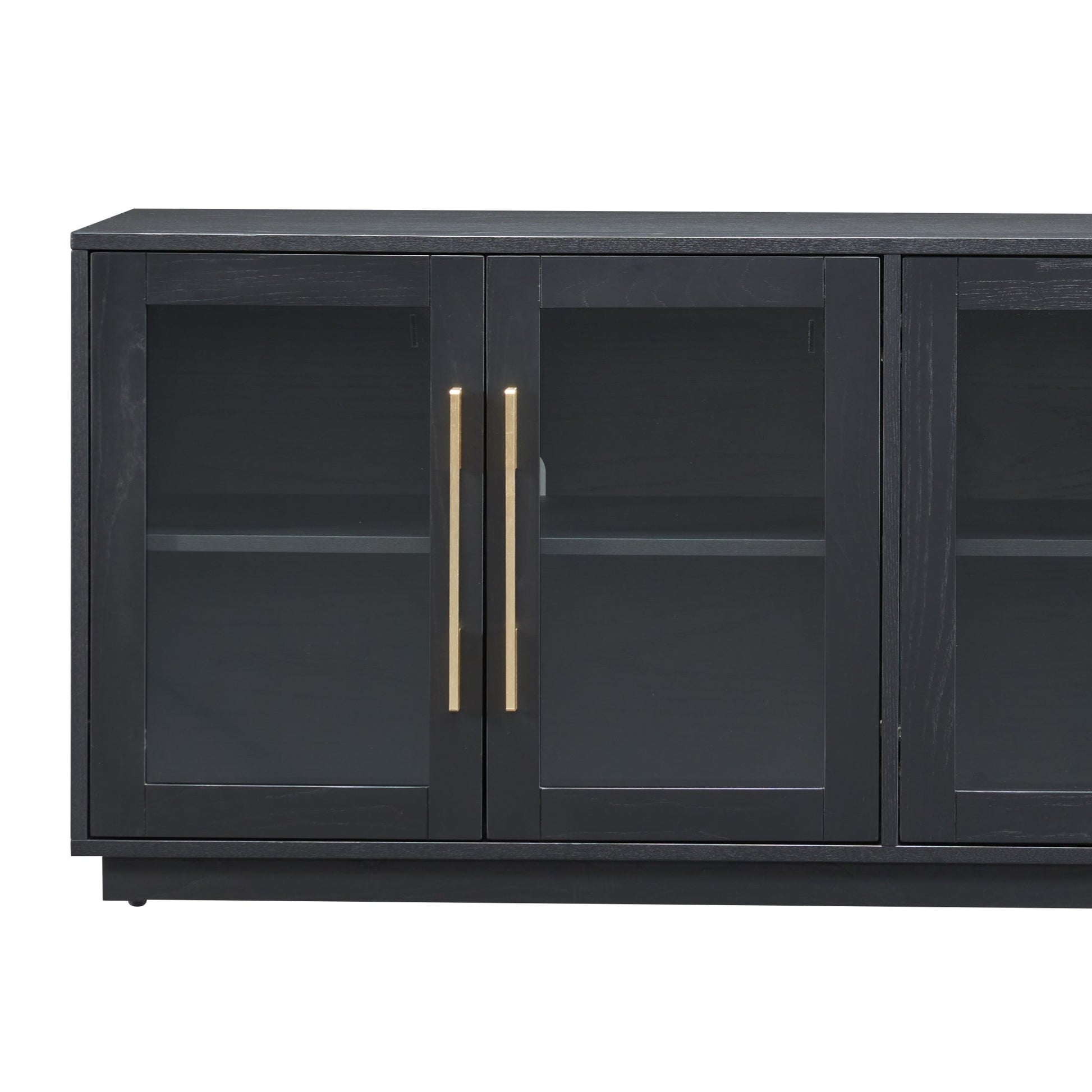Inspired by clean-lined classical forms, streamlined design allows the wood's rich grain to be celebrated 4-Door cabinet with tempered glass door panels, convenient metal handles. Each side has one adjustable shelf ensure excellent internal storage space to meet all your household needs.