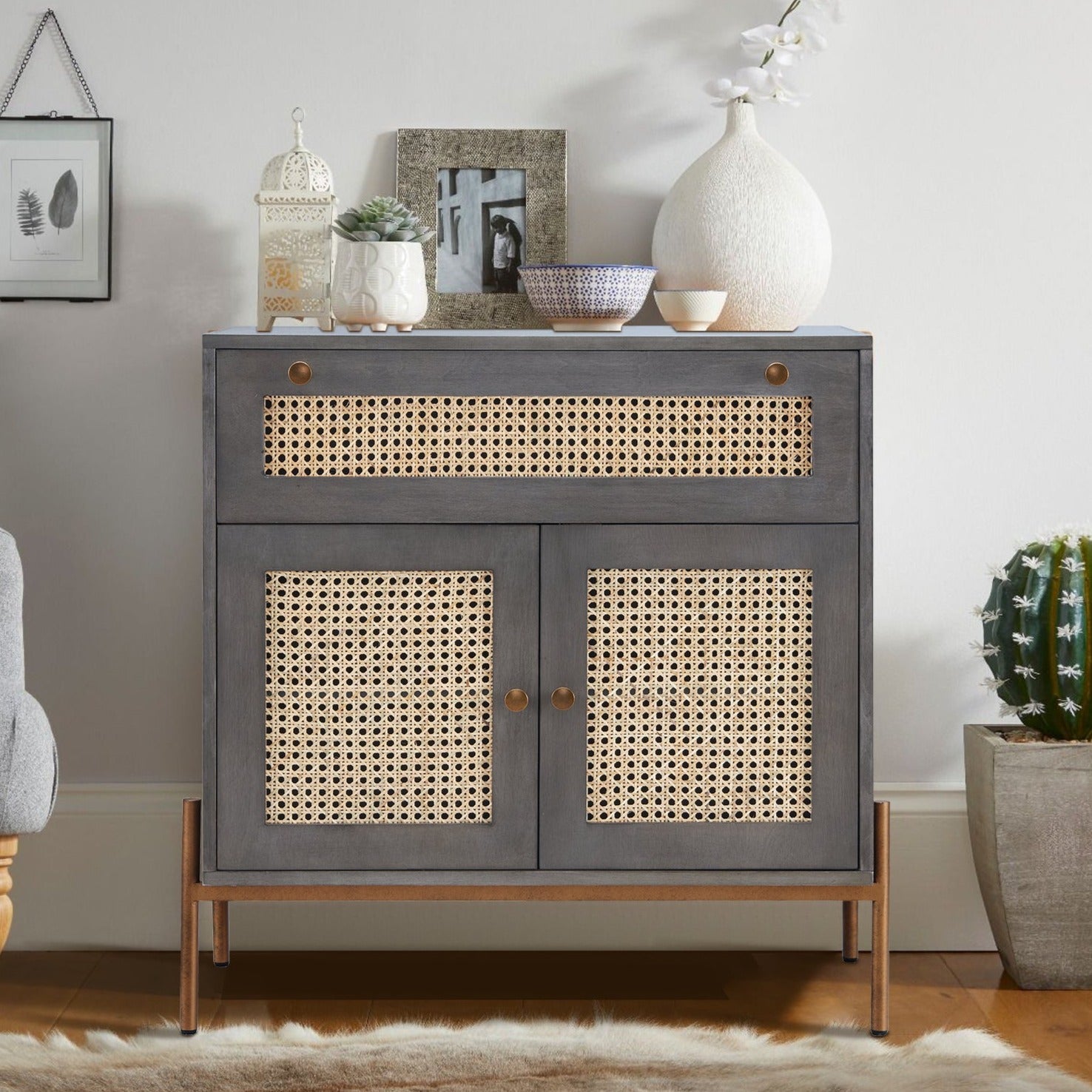 *Material:metal+MDF+Cane