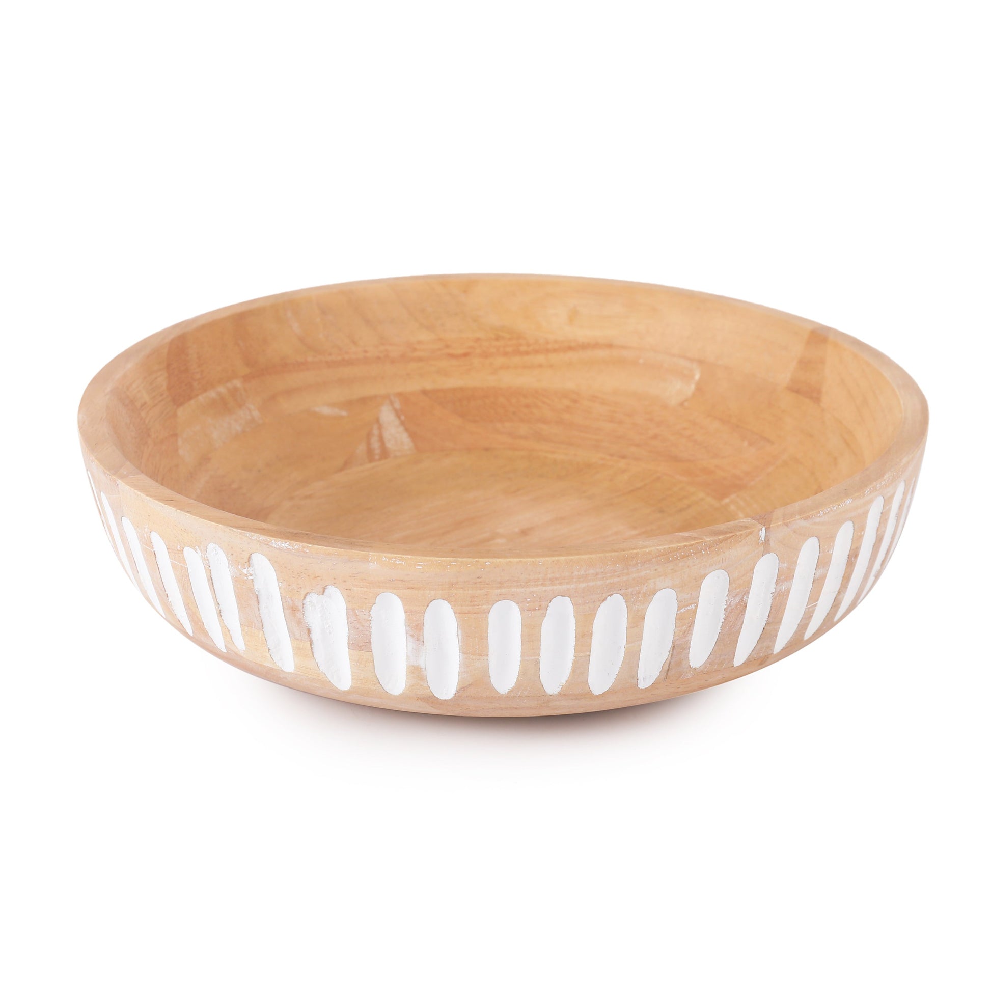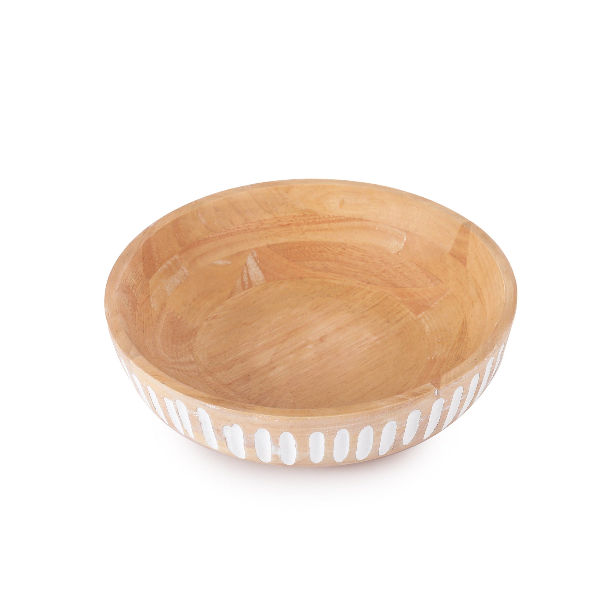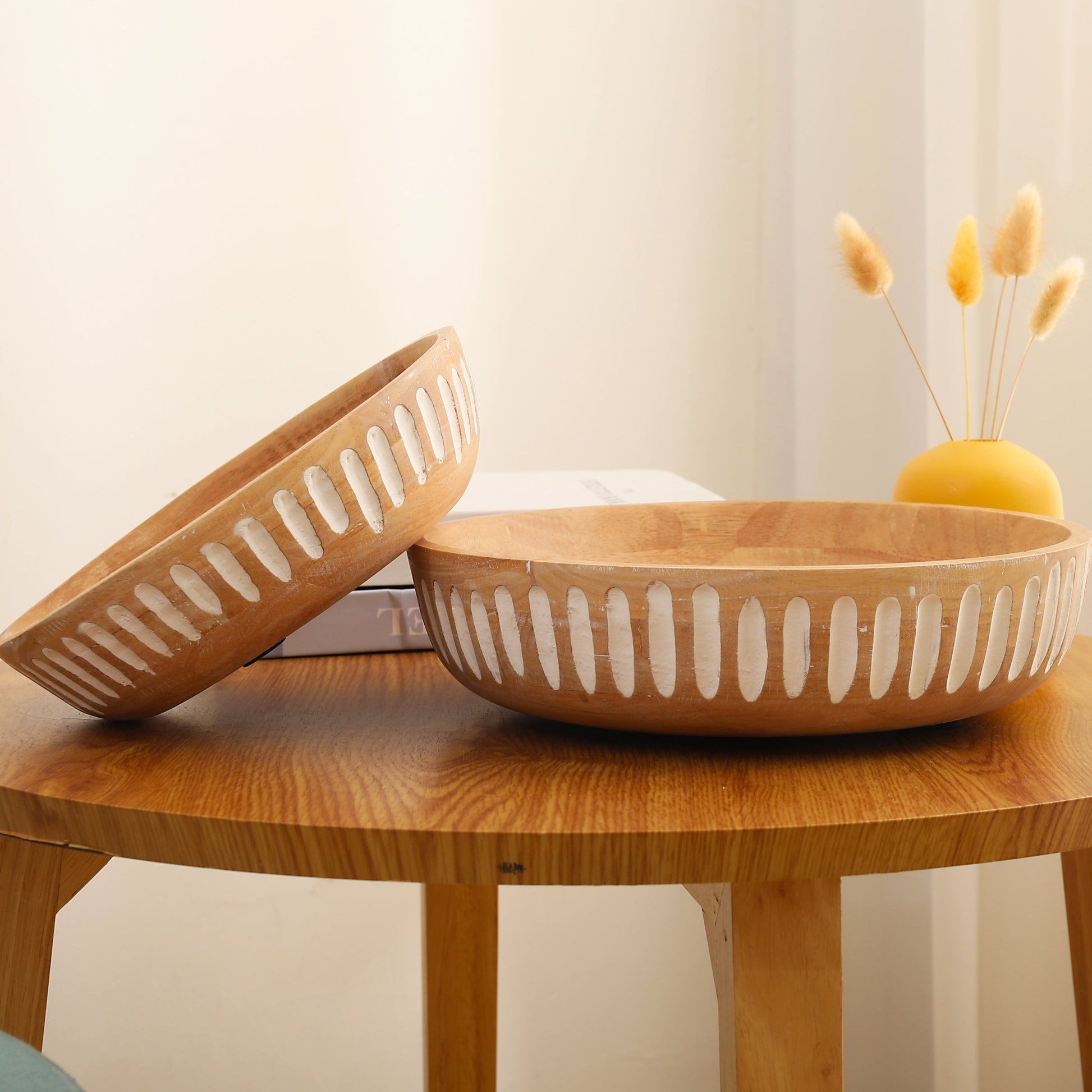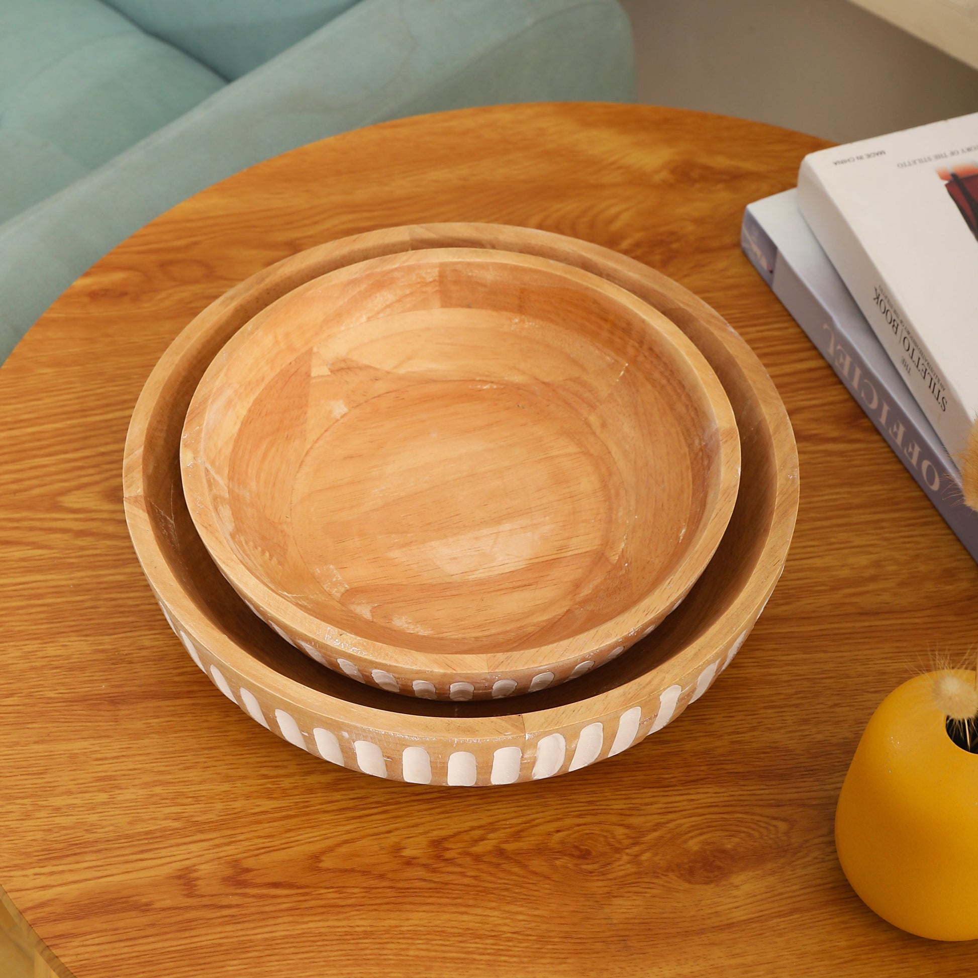 Set of 2 Natural Wooden Decorative Bowl, Round Hand Carved Bowl for Decorative Kitchen Countertop