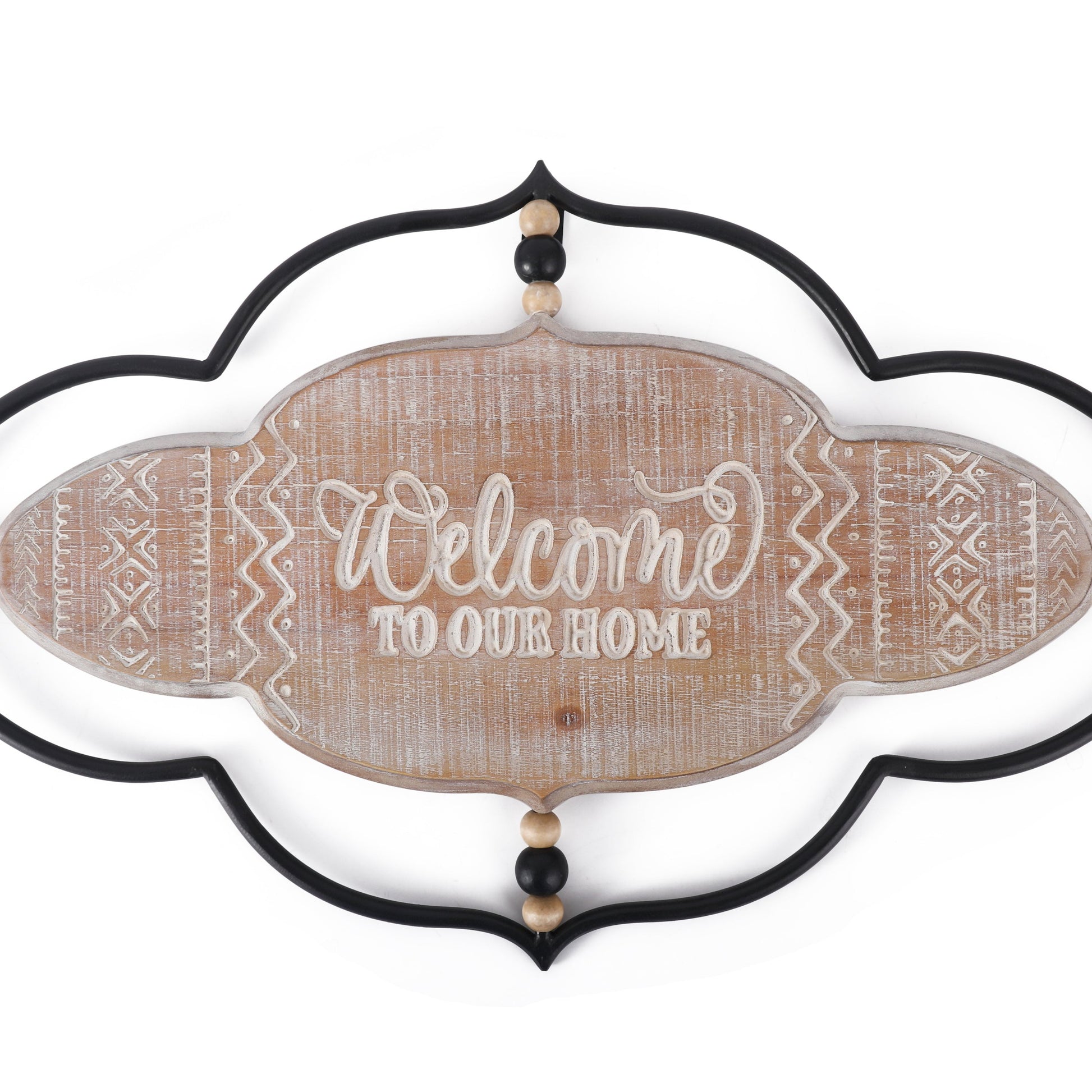 【About Details】Our decorate sign with a scratched surface, pearl edge and carved vintage style welcome sign, the unique shape makes it more decorative
